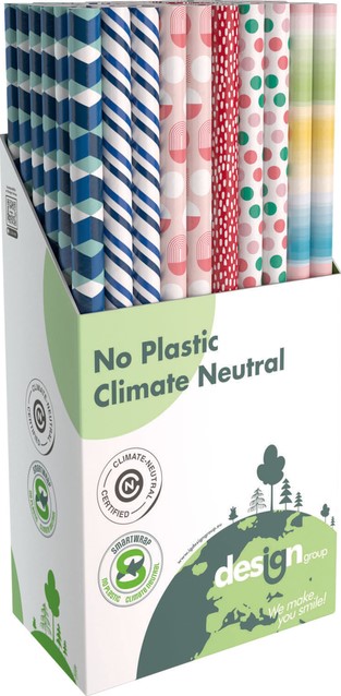 • Dit zijn duurzame en folieloze rollen inpakpapier, ze zijn op een speciale wijze gewikkeld, waardoor er geen plastic meer nodig is en daardoor minder afval.