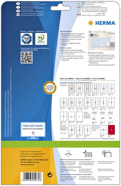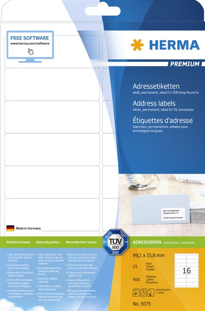 Etiket HERMA 5075 A4 99.1x33.8 mm premium 400stuks wit