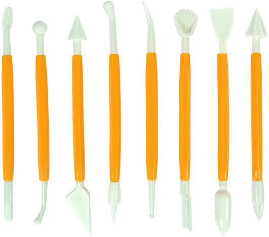 • Set met 8 verschillende kunststof boetseerspatels van ca 15 cm.