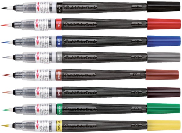 Ideale brush voor aquarel, illustraties, manga, strips/cartoons. Penseelstift gevuld met aquarel inkt op waterbasis. De zachte borstelpunt maakt variabele lijndiktes mogelijk. Ideale brush voor aquarel, illustraties, manga, strips/cartoons. Hoogwaardige, duurzame nylon borstelharen zorgen ervoor dat de punt zijn vorm behoudt. Soepele doorstroming van de inkt zonder te lekken. Navulbaar met de Pentel FR Colour Brush Navulpatronen.