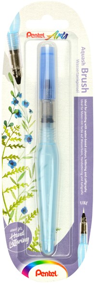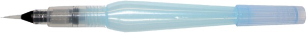 Aquash brush. Pen met sterke niet vervormbare penseelpunt. Het transparante handvat is tevens waterreservoir. Geen apart waterbakje zodat er overal en zelfs onderweg in de auto, bus of trein mee gewerkt kan worden. Inhoud waterreservoir 10ml. Nieuw geleidesysteem zorgt ervoor dat, afhankelijk van het indrukken van de houder, de penseelpunt exact de gewenste watertoevoer krijgt. Gemakkelijk te reinigen. Penpunt: fijn.