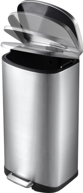 • De pedaalemmer is uitgerust met een geruisloos sluitend deksel en een openhoudfunctie. Deze functie vergrendelt het deksel voor het eenvoudig verwisselen van de afvalzak en/of het verwijderen van de binnenbak.