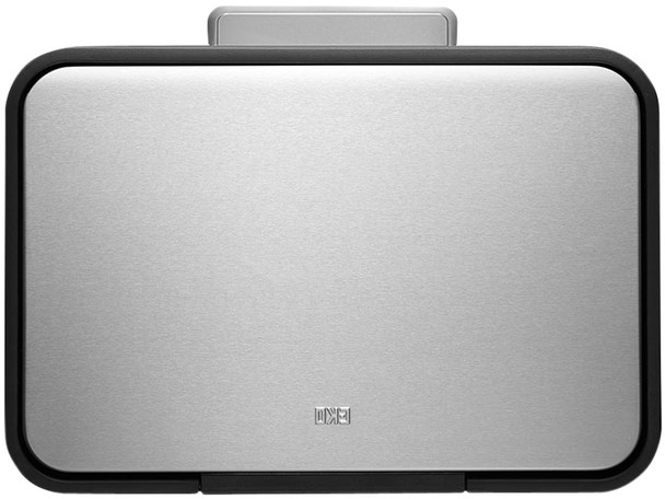 • De zilverkleurige EKO EcoCasa pedaalemmer van 30 liter is een trendy rechthoekige afvalemmer van geborsteld roestvrij staal met een vingerafdrukbestendige coating en kunststof dekselgrepen.