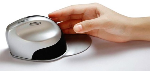 • De Ergoline SRM 5 verticale muis onderscheidt zich door de afneembare polssteun en instelbaar gewicht.