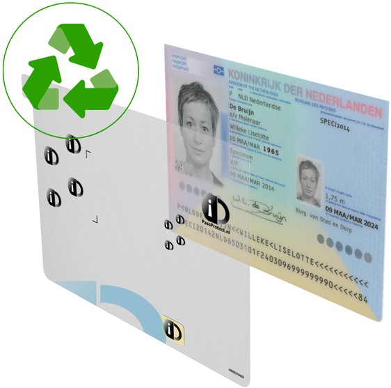 PassProtect is een speciaal ontwikkelde transparante beschermfolie voor uw identiteitsbewijs. De beschermfolie is blijvend afneembaar en terug te plaatsen op het identiteitsdocument waarbij het geen (lijm)resten achterlaat. Bij gebruik van PassProtect zijn belangrijke identiteitsgegevens, zoals pasfoto en Burgerservicenummer (BSN), niet volledig zichtbaar. Met PassProtect is een kopie van uw identiteitsbewijs beter beschermd tegen fraude en blijft identificatie mogelijk.• Direct uit de verpakking te gebruiken• Handige paslijnen voor eenvoudige plaatsing• Inclusief gebruiksaanwijzing• Inclusief bijsluiter met uitleg in 6 talen• Met speciale paperclip voor afscherming van de pasfoto op de papieren pagina• Eenvoudige identificatie door transparante folie• Blijvend afneembaar en terug te plaatsen• Laat geen (lijm)resten achter• Uv-licht bestendig• Werkzaam bij temperaturen van -15° tot 75° C• Met water afwasbaar (beide zijden)• Vervaardigd uit 80% gerecycled PET materiaal• Recyclebare folie en verpakking