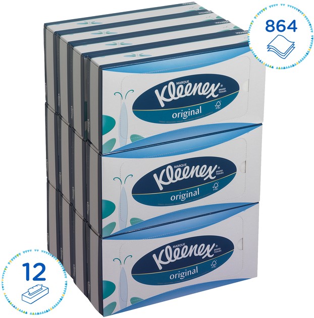 • Kleenex Facial Tissues 8824 wit 3-laags 12 x 72 (864 vellen)