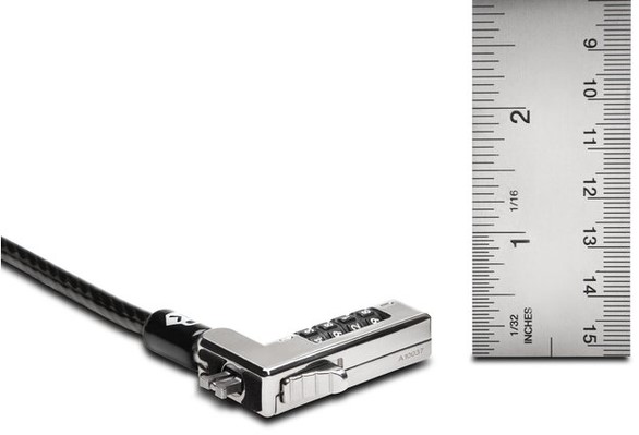 • Bij ultradunne laptops van tegenwoordig met de Nano-beveiligingssleuf past een typische kabelslotkop. Omdat de laptop zelf echter zo dun is, zal de laptop niet plat liggen als het slot eenmaal is bevestigd, aangezien de dikte van het slot groter is dan die van de laptop. Het Ultradunne NanoSaver ™ combinatieslot voor laptops is de sterkste sleutelloze vergrendelingsoplossing waarmee ultradunne en 2-in-1 laptops met nano-slotsleuven plat en stabiel kunnen liggen.