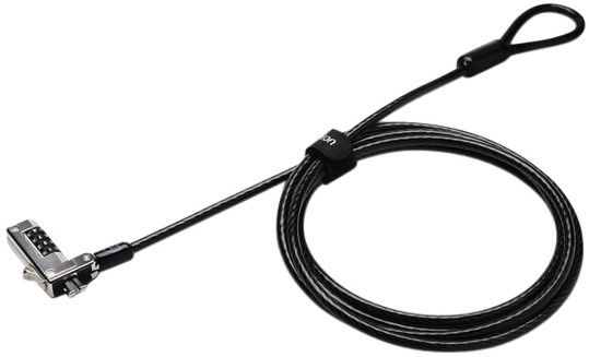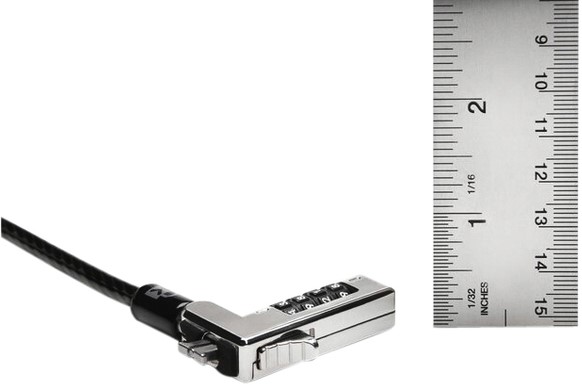 • Bij de huidige dunne laptops past een gangbaar kabelslothoofd misschien wel, maar de laptop zelf is zo dun dat deze niet vlak blijft liggen wanneer het slot is bevestigd. Dit komt omdat het slot dikker is dan de laptop, waardoor het apparaat scheef op het oppervlak staat. Het Slim Combination Laptop Lock is het sterkste vergrendelingsproduct zonder sleutel dat ultradunne en 2-in-1-laptops met standaard slotuitsparingen vlak en stabiel laat liggen.
