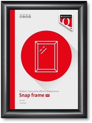 • Geef je documenten, posters of mededelingen een elegante uitstraling met de Quantore Premium kliklijst in A4-formaat. Het zwarte frame, gemaakt van hoogwaardig aluminium, zorgt voor een strakke, moderne look die perfect past in kantoren, winkels of openbare ruimtes. Dankzij de ontspiegelende transparante folie blijft je inhoud duidelijk zichtbaar zonder hinderlijke reflecties. De randbreedte van 25 mm en verborgen montagegaten zorgen voor een nette afwerking. Inclusief ophangmateriaal, zodat je de lijst eenvoudig aan de muur kunt bevestigen.Kenmerken: