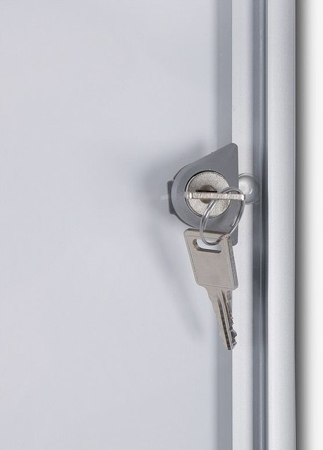 • Voorpaneel: plexiglas draaideur, vergrendelbaar met cilinderslot.