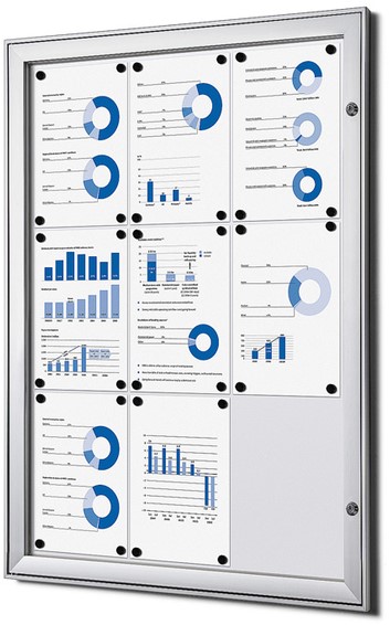 • Presenteer jouw menu, prijzen of informatie professioneel en veilig met het luxe vitrinebord van Quantore, geschikt voor 9 A4-documenten. Deze vergrendelbare vitrine is voorzien van een stevige draaideur met helder plexiglas en een cilinderslot voor optimale beveiliging. De metalen achterwand is droog uitwisbaar en geschikt voor gebruik met whiteboardstiften en magneten. Dankzij de robuuste uitvoering en stijlvolle zilverkleur is het bord perfect voor gebruik in kantoren, scholen, horecagelegenheden en openbare ruimtes, zowel binnen als in beschutte buitenomgevingen.Kenmerken: