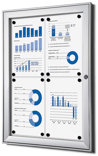 • Presenteer jouw menu, prijzen of informatie professioneel en veilig met het luxe vitrinebord van Quantore, geschikt voor 4 A4-documenten. Deze vergrendelbare vitrine is voorzien van een stevige draaideur met helder plexiglas en een cilinderslot voor optimale beveiliging. De metalen achterwand is droog uitwisbaar en geschikt voor gebruik met whiteboardstiften en magneten. Dankzij de robuuste uitvoering en stijlvolle zilverkleur is het bord perfect voor gebruik in kantoren, scholen, horecagelegenheden en openbare ruimtes, zowel binnen als in beschutte buitenomgevingen.Kenmerken: