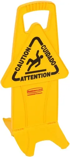 Waarschuwingsbord Rubbermaid tweezijdig meertalig met voet 66cm geel
