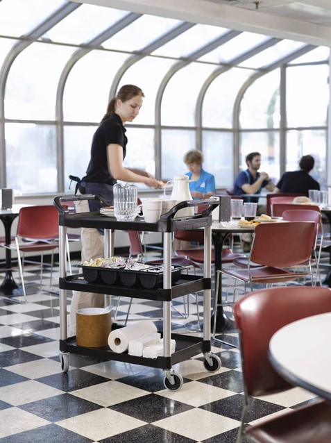 Serveerwagen Rubbermaid met 10cm zwenkwielen zwart