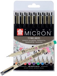 Fineliner Sakura Pigma Micron assorti etui à 9 stuks