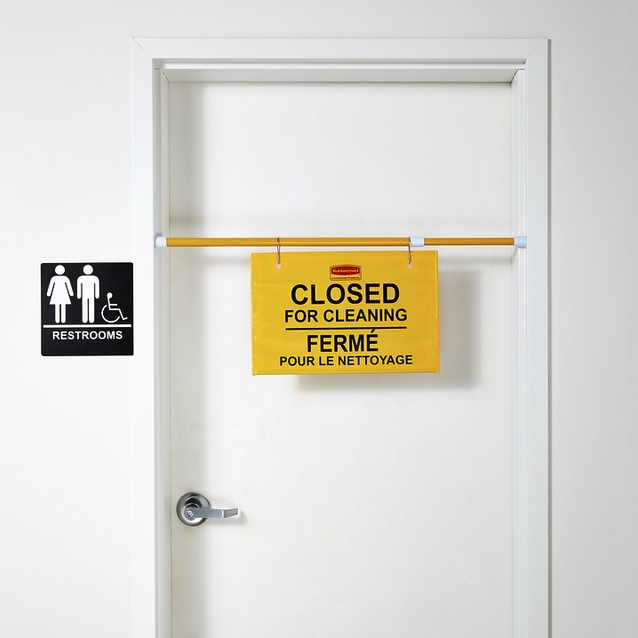 Waarschuwingsvlag hangend meertalig closed for cleaning geel