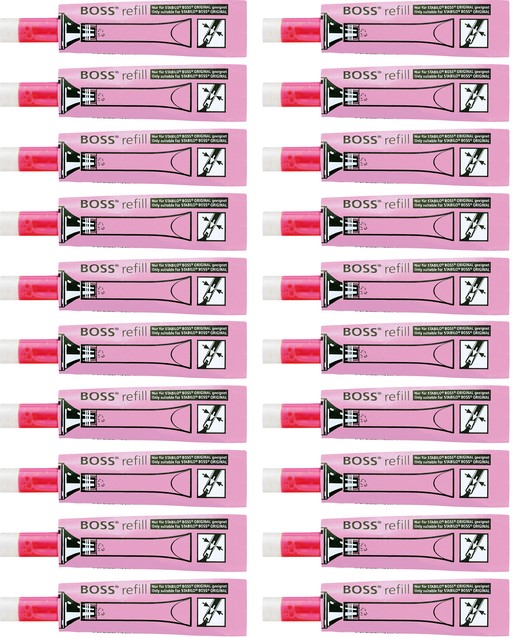 De STABILO BOSS ORIGINAL navulling is en navulsysteem voor STABILO BOSS ORIGINAL, STABILO BOSS SPLASH en de STABILO GREEN BOSS markeerstiften. De handige navullingen zet je makkelijk op de punt en zo vul je de markeerstift na. Iedere navulling is los verpakt.