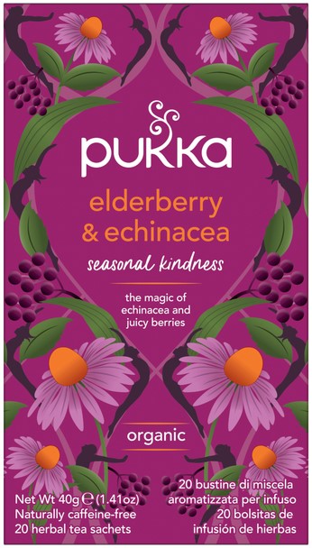 • Pukka Elderberry & Echinacea is een blend met echinacea wortel, blad en vlierbloesem. Gemaakt van 100% biologische ingrediënten die duurzaam verbouwd zijn.