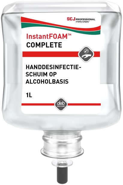 • InstantFOAM™ COMPLETE is een desinfectieschuim voor de handen op alcoholbasis en is ongeparfumeerd en kleurstofvrij
