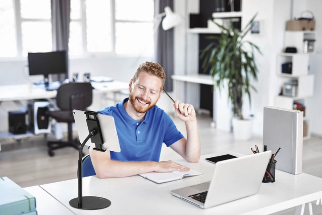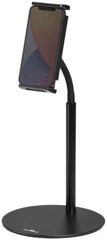 • Tafelstandaard met houder voor tablet of smartphone, voorzien van flexibele arm en kogelgewricht.