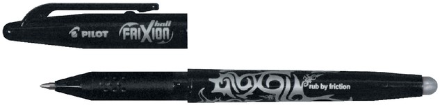 • De speciale inkt reageert op warmte, door wrijving met het rubber uiteinde van de pen wordt de inkt onzichtbaar.