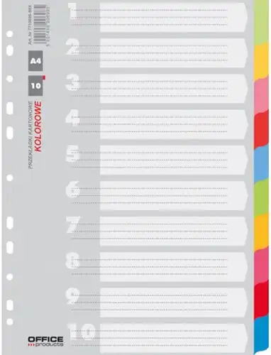 Deze set gekleurde verdelers is gemaakt van 170 grams gerecycled karton, een duurzame keuze voor het ordenen van je documenten. De set bevat 10 gekleurde verdelers en 1 eerste beschrijvingskaart met cijfers in grijs, ideaal voor een overzichtelijke en georganiseerde indeling van je A4-documenten.