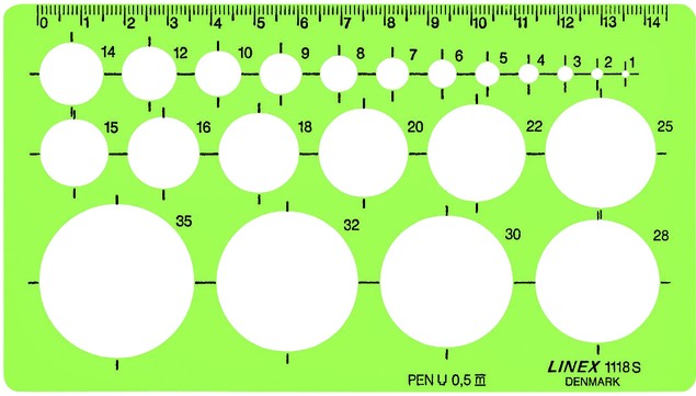 Cirkelsjabloon Linex 22 cirkels met inktvoetjes 1-35mm groen