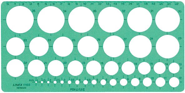 Cirkelsjabloon Linex 39 cirkels met inktvoetjes 1-35mm groen