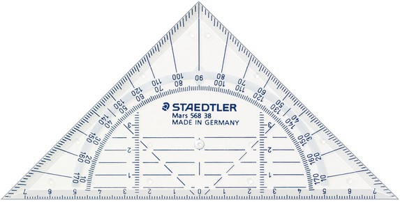 • Geodriehoek van onbreekbaar kunststof.