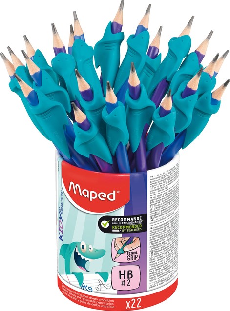 Grafietpotlood Maped Kidy Learn met gum en vingerhulp pot à 22 stuks assorti