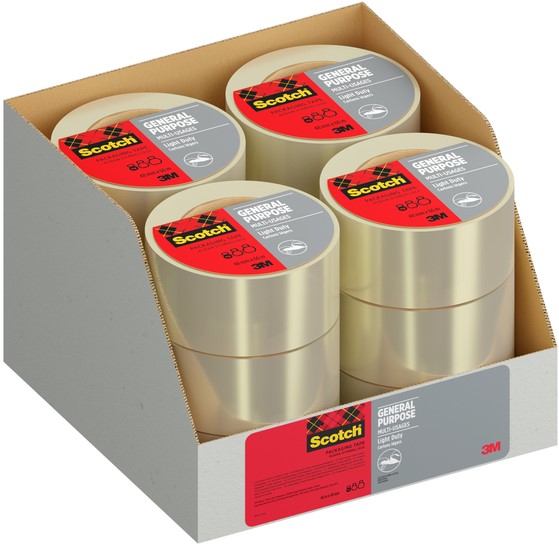 • Scotch® General Purpose Packaging Tape maakt het gemakkelijk om lichtgewicht verpakkingen thuis of op kantoor in te pakken, af te sluiten en op te bergen.