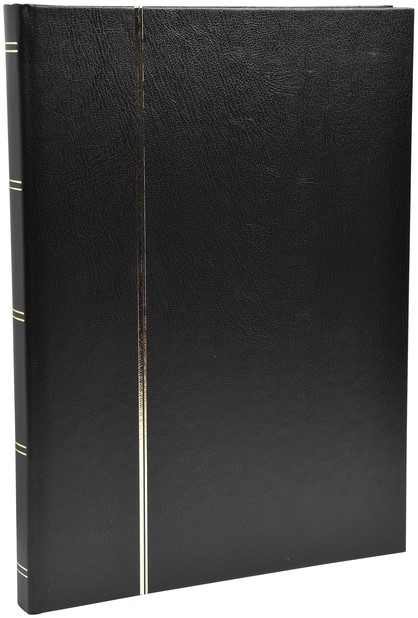 Postzegelalbum met kunstlederen omslag- 48 zwarte bladen - 9 banden - 22 ,5x30,5cm Stijlvolle omslag in kunstleer, mooi in een boekenkast en bestendig tegen de tand des tijds. Zwarte binnenpagina's die de postzegels helemaal tot hun recht laten komen. Kristal beschermend tussenblad op elke pagina. Binnenkant: bevat 9 doorzichtige acetaatstroken per pagina.