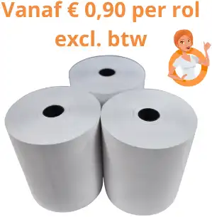 De thermische kassarollen zijn Bisfenol A (BPA) vrij en hebben een breedte van 80 mm, een diameter van 80 mm en een kern van 12 mm. Er zit 75 meter op één rol.