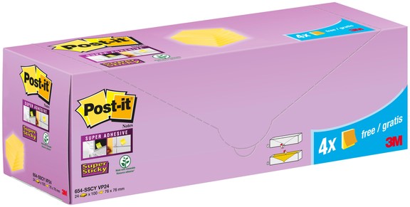 Memoblok 3M Post-it 654-SSCY Super Sticky 76x76mm geel voordeelpak