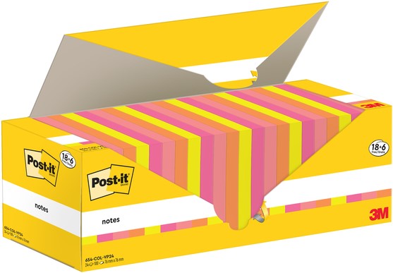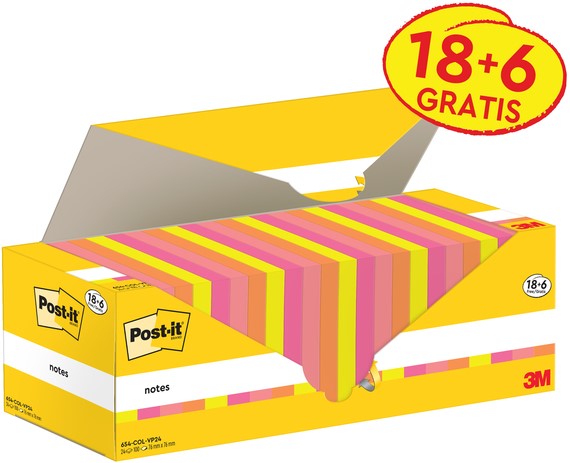Memoblok 3M Post-it 654-COL 76x76mm kleur ass voordeelpak