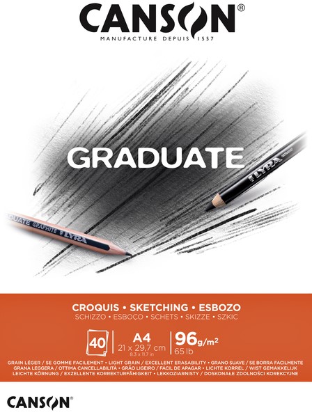 Schetspapier Canson Graduate Sketch 40vel 96gr A4 natuurlijk wit