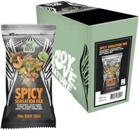 • Onze Spicy Sensation Mix bestaat uit krokant gebakken, gekruide en gezouten notensoorten zoals pecannoten, cashewnoten en katjang pedis, wasabi ravioli, en pompoenpitten. Deze notenmelange heeft een heerlijk kruidige en scherpe smaak, waardoor hij perfect past bij een biertje of een glas wijn. Daarnaast bevat deze mix ook nog eens 33% minder zout dan gangbare borrelmixen. De pecannoot is het zoete broertje van de walnoot en is daarom ook een favoriet van veel mensen. In deze noot zitten meer dan 19 vitamines en mineralen, zoals vitamine E en A, foliumzuur, calcium, magnesium, koper, fosfor, kalium, mangaan en zink. De pecannoot lijkt niet voor niks op een brein: haar voedingsstoffen hebben door de hoge hoeveelheid vitamine B een bijzonder goede invloed op je hersenfunctie! Verder zitten er in deze notenmix een aantal échte eiwitbommen: amandelen, cashewnoten, pinda’s en pompoenpitten. Al deze noten en zaden bevatten ook nog eens veel onverzadigde vetzuren. Hierdoor is deze mix goed geschikt om wat extra energie bij te tanken na je sportsessie, of als vullende snack tussendoor.