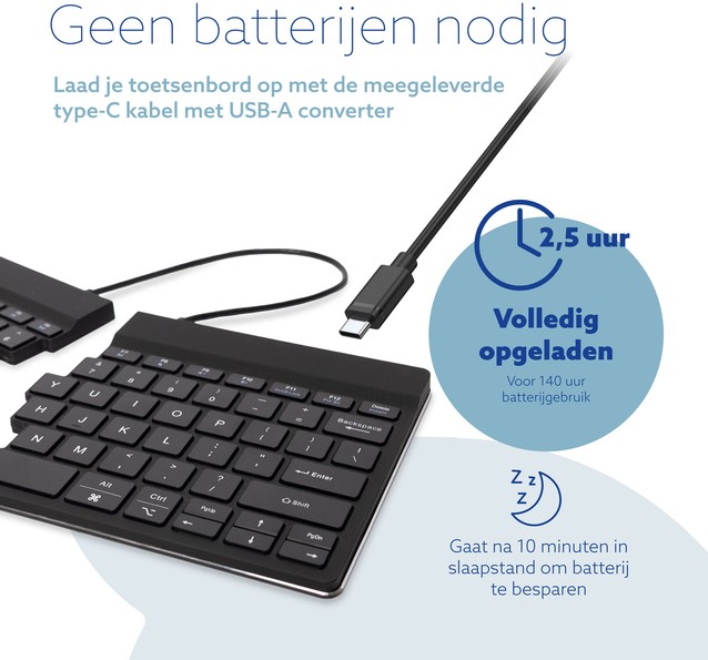 • Door de ingebouwde magneet kun je de twee afzonderlijke delen van het toetsenbord met 1 beweging veranderen in een compact toetsenbord.