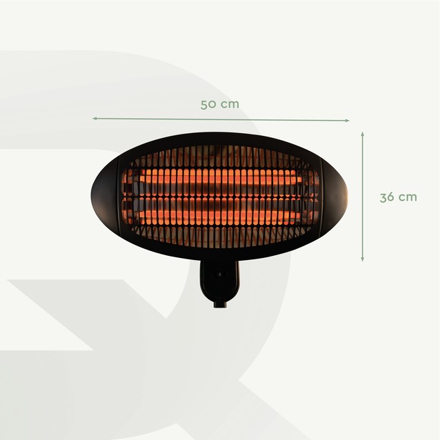 • De lamp heeft een afmeting van 50x36 cm en is uitgerust met 3 quartz verwarmingselementen. Deze buizen warmen direct op en zorgen voor een sfeervolle en aangename verlichting. Door middel van een trekkoord verwarm je met gemak en snelheid een ruimte tot 20m2. Met drie warmtestanden, die je regelt door middel van het trekkoord, van 650/1300/2000 watt kies je zelf hoe warm het wordt. Deze heater is geschikt om op te hangen aan plafond, muur of verkapping en makkelijk kantelbaar in de gewenste hoek. De terrasverwarmer wordt geleverd inclusief bevestigingsmaterialen. De terrasverwarmer heeft een automatische veiligheidsuitschakeling die de hem automatisch uitschakelt als het apparaat toch omvalt of wanneer deze oververhit raakt. Voor extra veiligheid is het verwarmingselement afgeschermd met een rooster, zodat de lampen niet per ongeluk aangeraakt kunnen worden. Voor alle liefhebbers van het buitenleven biedt de BRASQ Terrasverwarmer een war(m)e uitkomst.