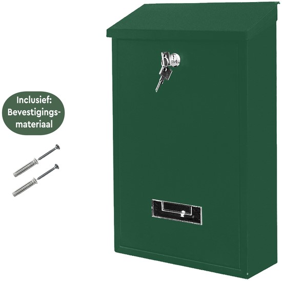 • De BRASQ PB100 Basic is een betrouwbare en strak vormgegeven wandbrievenbus in stijlvol groen. Gemaakt van duurzaam metaal en ontworpen voor dagelijks gebruik, biedt deze brievenbus een veilige en praktische oplossing voor al je post. Met het tijdloze design past hij moeiteloos bij elke gevel. De ruime opening en handige inworp zorgen voor optimaal gebruiksgemak, terwijl het cilinderslot je post beschermt tegen ongewenste toegang. Beschermd tegen weersinvloeden door gegalvaniseerd en gepoedercoat staal