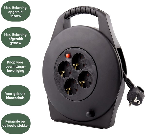 • Max. Belasting opgerold: 1100W Max. Belasting uitgerold: 3200W