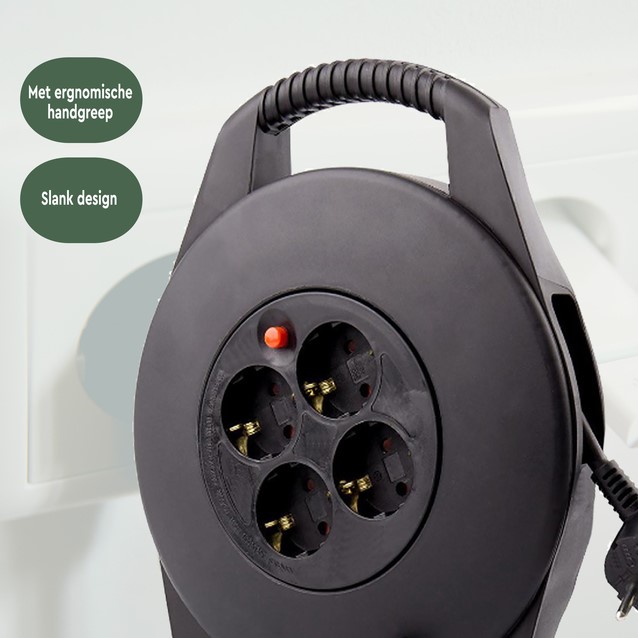 • Nooit meer een stopcontact te kort! Binnen het BRASQ verlengsnoeren assortiment is er voor elk tekort van een contactpunt - of te korte stroomkabels - een gepaste oplossing! Of je nu op zoek bent naar een compacte oplossing voor je thuiswerkplek of een robuuste kabelhaspel voor je werkplaats, ons assortiment biedt een brede selectie aan maten en types om aan al je behoeften te voldoen. Onze kabelhaspels zijn ontworpen met het oog op gemak. Deze lichtgewicht (2,1 kg) slanke kabelhaspel heeft een praktische stekkerdoos, en met 4 geaarde contactdozen sluit je eenvoudig 4 kabels aan. De haspel is eenvoudig op te rollen en uit te trekken, waardoor je kostbare tijd bespaart. De kabelhaspel, gemaakt van kunststof, heeft een praktische stekkerdoos. De BRASQ Kabelhaspel heeft een kabel van 15 meter, waardoor je een groot bereik hebt. En met het praktische handvat is oprollen een fluitje van een cent. De haspel beschikt over een thermische beveiliging, die de haspel uitschakelt bij te hoge temperatuur. De BRASQ kabelhaspels worden vervaardigd met hoogwaardige materialen die bestand zijn tegen slijtage en zorgen voor een veilige omgeving. Geen zorgen meer over beschadigde kabels of struikelgevaar! Sluit al je elektrische apparaten aan, zoals tv's, huishoudelijke apparaten, gadgets en (spel)computers aan op deze 4-voudige kabelhaspel!