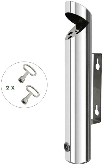 • De kolomasbak kan eenvoudig worden geleegd door het met de bijgeleverde sleutel de asbak te openen. Door het klepje onderaan met de sleutel te openen kun je de inhoud gemakkelijk legen. Sluit de asbak vervolgens weer met de sleutel.