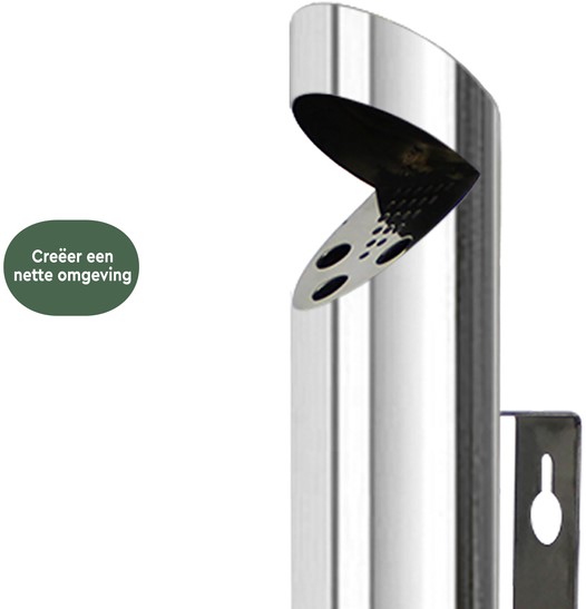 • Deze fraaie wandasbak, ook wel kolomasbak, van BRASQ draagt bij aan een schone en opgeruimde omgeving als het gaat om sigaretten of sigaren peuken.