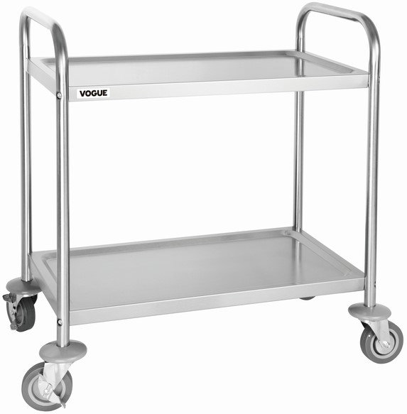 • Serveerwagen van het toonaangevende merk Vogue. Van uitstekende kwaliteit en gemaakt van sterk en duurzaam RVS. Compleet met 4 wielen, waarvan 2 geremd voor het veilig en eenvoudig transporteren van items. Deze serveerwagen met 2 bladen helpt uw personeel bij het afruimen van tafels, ruimtes schoon en hygiënisch te houden en klanten tevreden te houden.