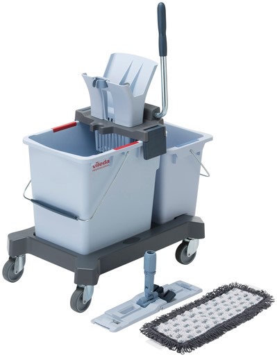 • UltraSpeed Pro is een uitgekiend en compact mopsysteem voor de spoel & persmethode. Het doordachte design kent veel handige details en biedt enorme voordelen op het gebied van snelheid, reinigingsprestatie, flexibiliteit en gebruiksgemak. De UltraSpeed Pro Starterkit Double bestaat uit een onderstel met zwenkwielen, een 25 ltr spoelemmer met rode kleurcoderingsclips, een opzetemmer 8 ltr met blauwe kleurcoderingsclips, een hendelpers met geïntegreerde steelklem, een mopframe en een r-MicroSpeed Max microvezelmop. De starterkit is exclusief steel, we bevelen aan de ergonomische Vileda Professional telescoopsteel te gebruiken. De starterkit is uit te breiden met een ergonomische duwbeugel waaraan een extra 6 ltr emmertje opgehangen kan worden. Daarnaast biedt UltraSpeed Pro een uitgebreid assortiment van microvezelmoppen.