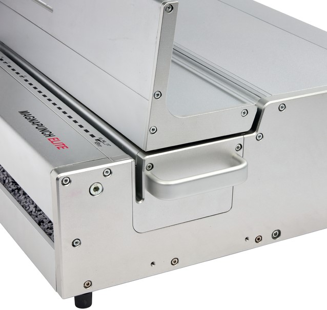 • Met zijn efficiënte snelheid en duurzaamheid is de GBC Magnapunch Elite een innovatieve halfautomatische papierponsmachine met de mogelijkheid om de matrijzenset te verwisselen. Met een snelwisselsysteem voor de matrijzenset maakt deze machine naadloze overgangen tussen verschillende configuraties mogelijk, waardoor stilstand tot een minimum wordt beperkt. Deze ponsmachine is gebouwd voor betrouwbaarheid en bestaat uit stevige materialen en onderdelen van hoge kwaliteit, waardoor consistente en nauwkeurige resultaten worden gegarandeerd bij elke pons. Of je nu kleine series of grote hoeveelheden papier verwerkt, je kan erop vertrouwen dat de Magnapunch Elite elke keer foutloze perforaties aflevert, waardoor hij perfect past in jouw kantoor of drukkerij. Producteigenschappen;