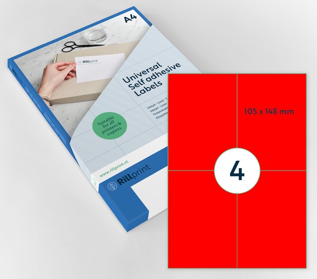 Etiket Rillprint 105x148mm fluorrood 400 etiketten