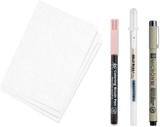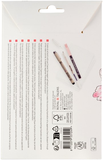 • Verkrijgbaar in 4 sets met Japanse thema's. Elke set bevat 3 Sakura favorieten: een Pigma Micron fineliner, een Gelly Roll pen en een Koi Coloring Brush Pen, papier en de link naar een gratis video tutorial. Alles wat je nodig hebt om meteen aan de slag te gaan!