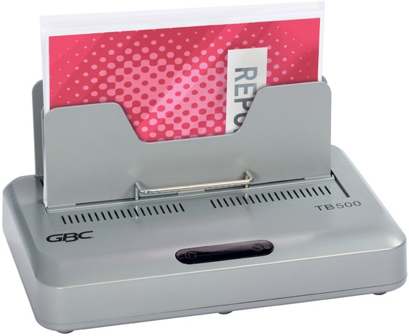 • De GBC TB500 thermische bindmachine is ontworpen voor middelgrote tot grote volumes en zorgt voor een gepolijste 'perfect gebonden' afwerking van documenten en presentaties. De eenvoudige maar intuïtieve bediening is voorzien van een automatische uitschakelfunctie wanneer er geen document is geplaatst. Producteigenschappen;